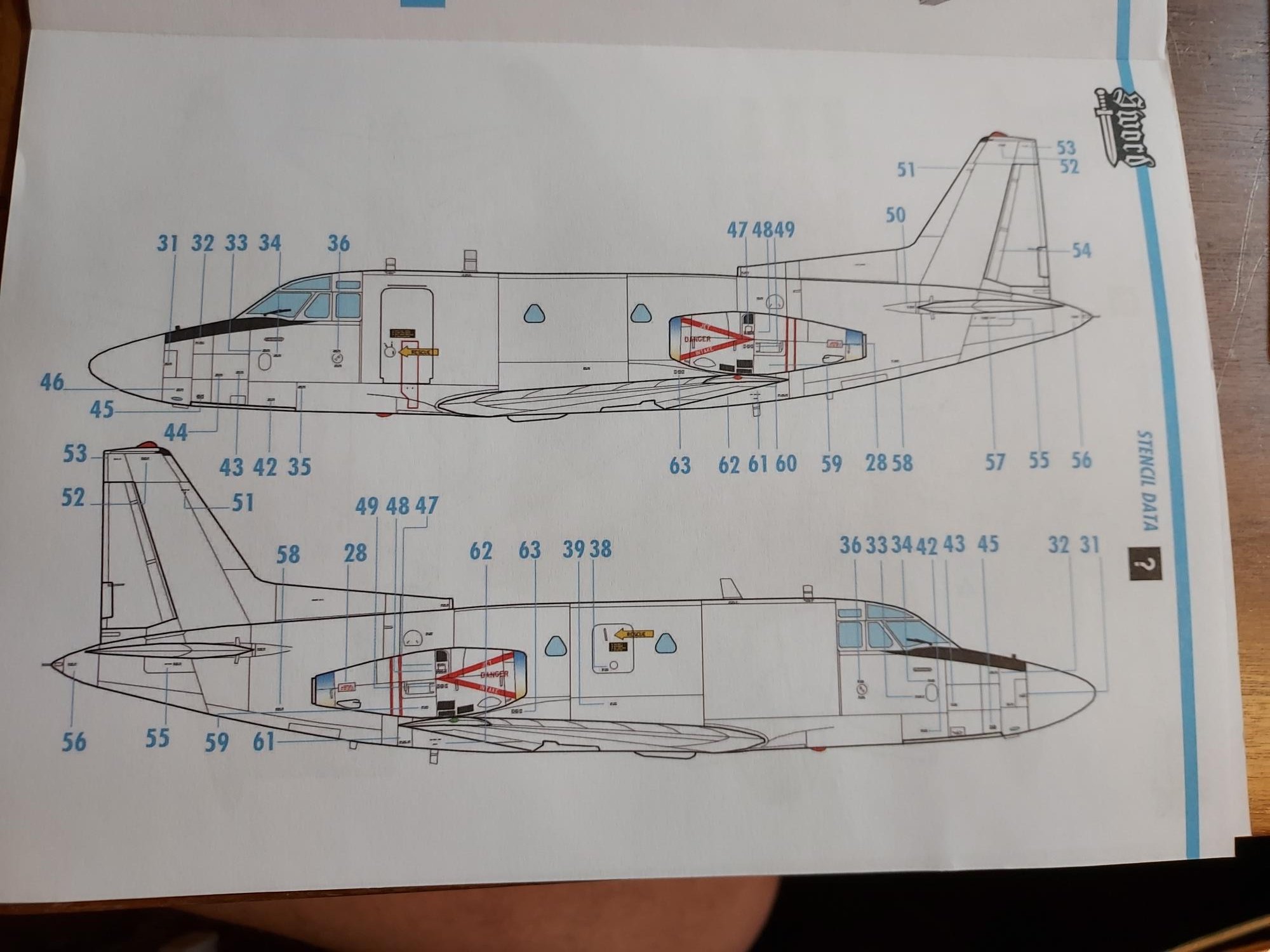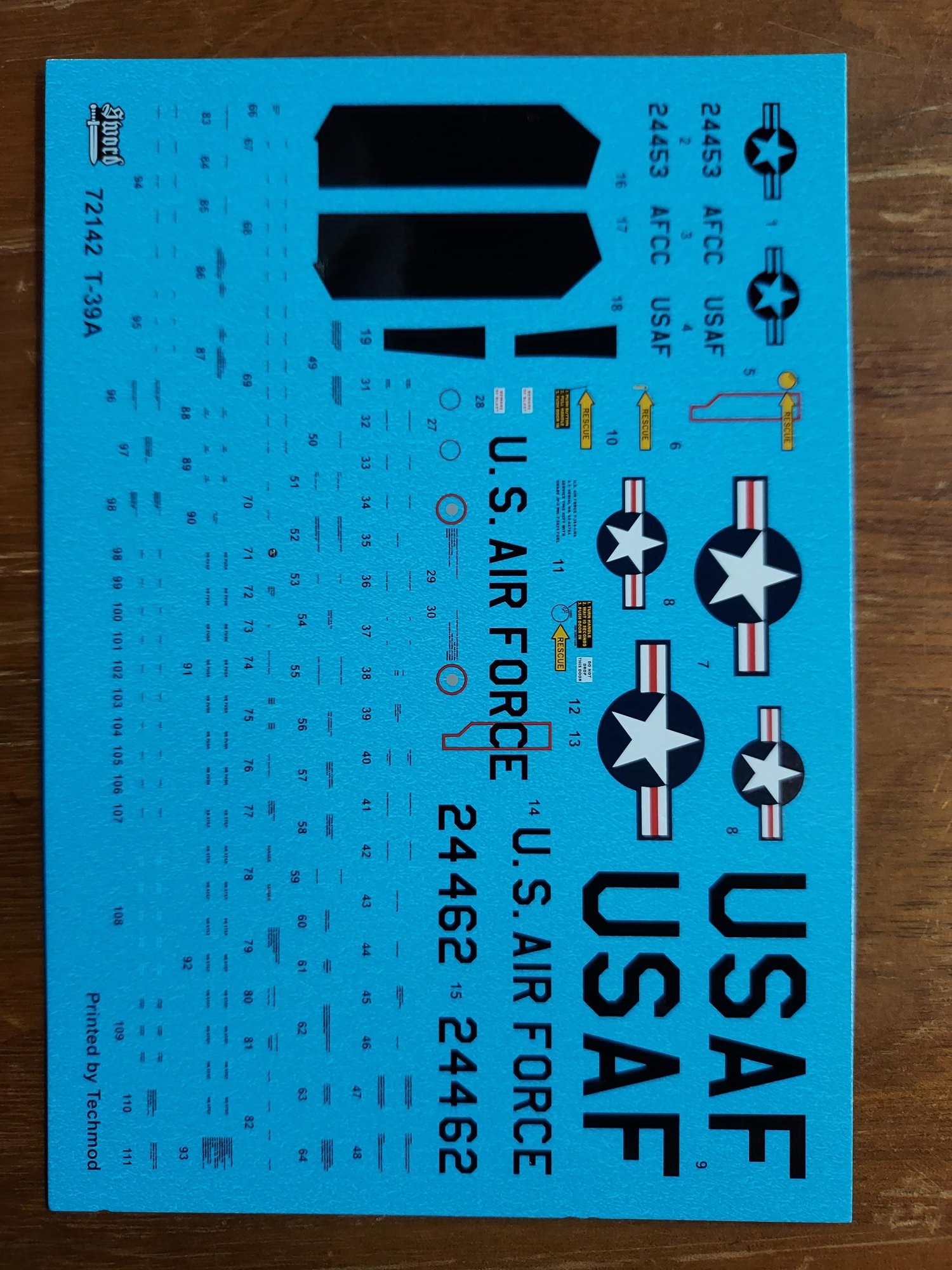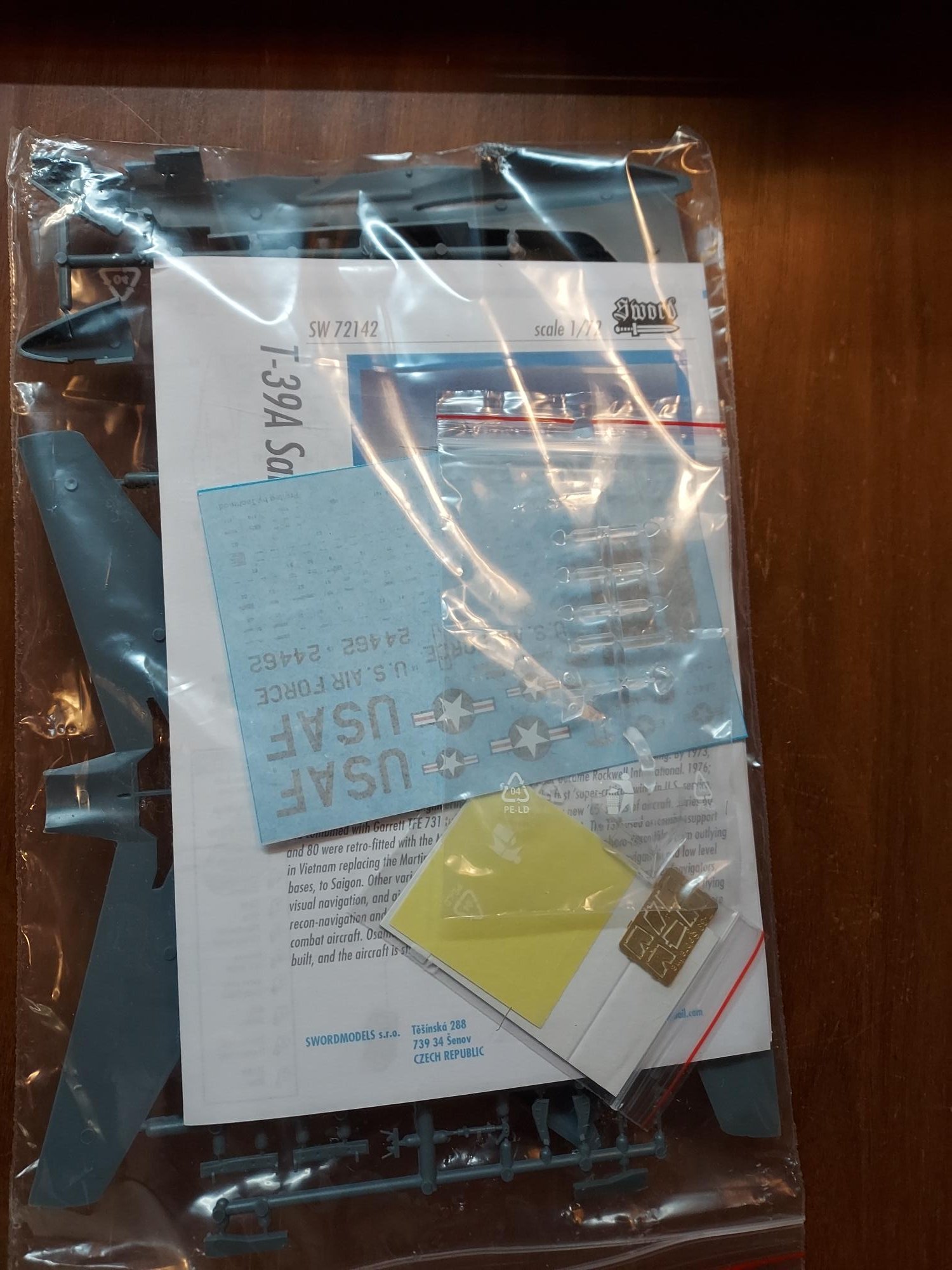 Dutch Posted July 1, 2022 Share Posted July 1, 2022 (edited) Okay, the Sword 1/72 #SW72142 North American T-39A Sabreliner kit just hit my desk. I purchased it from Hobby Link Japan (HLJ.com) and it arrived much quicker than I expected. Box top & backside marking illustrations. Main zip-loc bag with contents, front & back. Clear Spure & PE / canopy mask. Main sprue. Additional sprues. Decals. (Not bad! In register and tons of tiny data stencils.) Instruction booklet (10 pgs). A couple of notes. As can be seen on page 2, some parts in the parts diagram are "X'd" out, meaning these are for another version, namely the T-39D/N Naval training version. No mounting tabs are evident, so careful alignment while gluing is required. Also, no color callouts are provided for anything except the external markings. I will have to research cockpit and wheel wells. The decal sheet is pretty comprehensive for these two very simple schemes and are in register. The kit looks accurate in dimensions and outline. I like the fact that the engine splitter plates are included as PE and that window masks are also included. I can't wait to get started and see what aftermarket decals for more colorful schemes are released. Kind regards, Dutch Edited July 5, 2022 by Dutch small corrections Quote Link to post Share on other sites