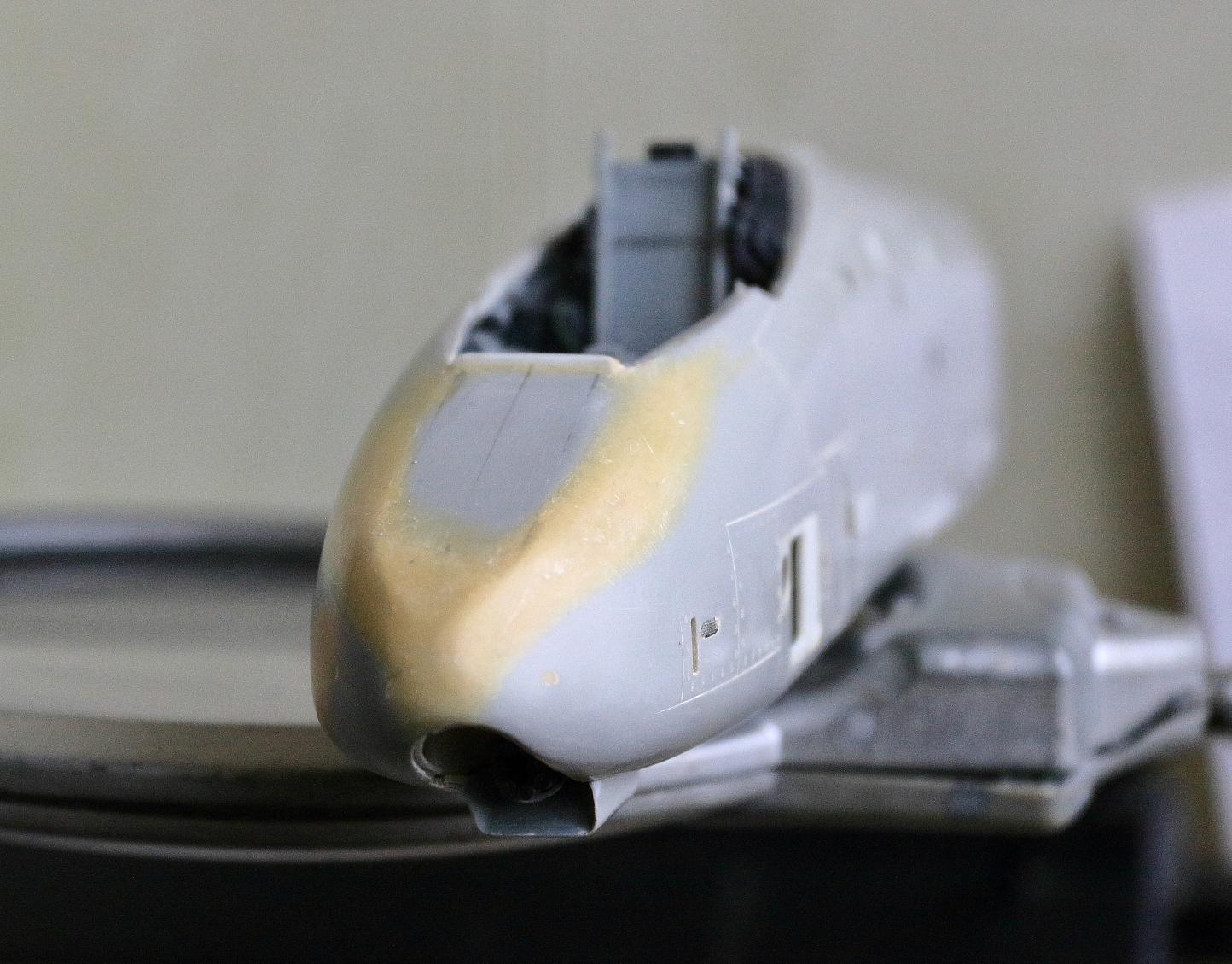 Eastern Posted April 21 Author Share Posted April 21 (edited) On 9/5/2022 at 3:29 PM, Alternative 4 said: This build is amazing, very tidy work. I'm looking forward to see how you tackle the nose shape. Hi there, Talking on the nose shape...Well, the Trumpeter's guys were like those artists who perceive things the way they watch them through their own eye. LOL The shape was absolutely incorrect. Too bulbous and short. about 1 cm shorter that it should be. So I eventually managed to reshape it the way it could be practically done. Of course, to make 100% accurate shape would be time and the material eater. So with the use of various files, epoxy putty and sand paper and wide range of images of the prototype I cobbled up the new shape. This is how turned out. The initial shape viewed from above: and the new one, from above: And some more images: Some more update to be soon. Cheers! Alexander Edited April 21 by Eastern adding some words Quote Link to post Share on other sites