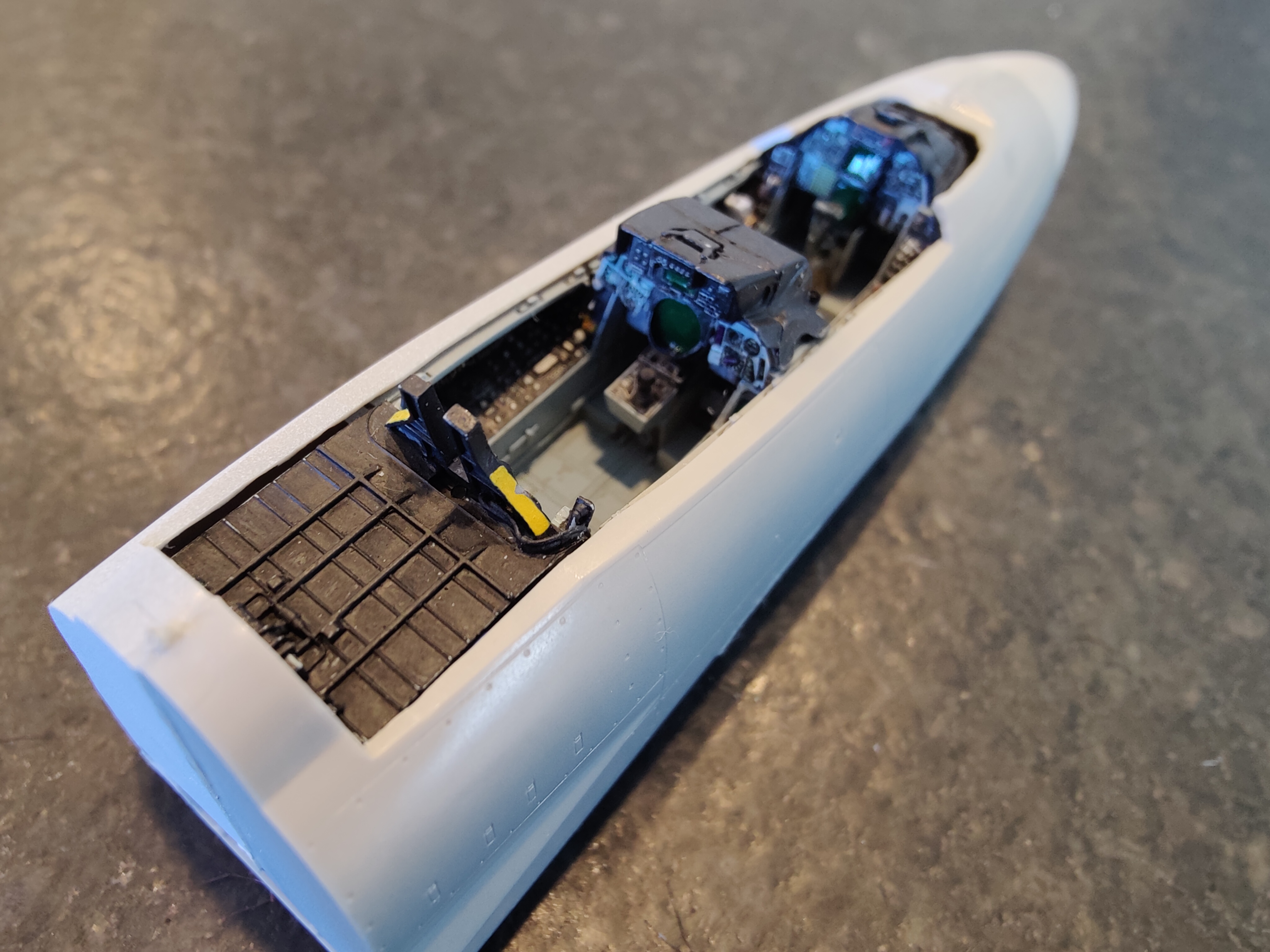 Micro Posted November 4, 2022 Author Share Posted November 4, 2022 Thanks! It's fun to get back in to this hobby. So fairly interesting story about that gun vent. In 1989 I was in the Naval Sea Cadets at then Nas Miramar. We spent a week of the summer with VF 124 and each of us were assigned to a plane captain. I still remember my plane Captain taking me on a walk around of the airplane with his name on it. I don't remember the modex or the buno, but I do remember the gun vent. That was because he pointed out to me that that particular airplane still had the "old" gun vent and needed to be upgraded. Anyway, after my walk around I got to sit in that thing and it was one of the more memorable experiences of my life. So I decided to build it as best I could. I ended up buying the Verlinden accessory kit specifically for the old gun vent. Looks wrong I know, but at least in 1989 at VF-124 there was one jet with the old vent still on it. Quote Link to post Share on other sites