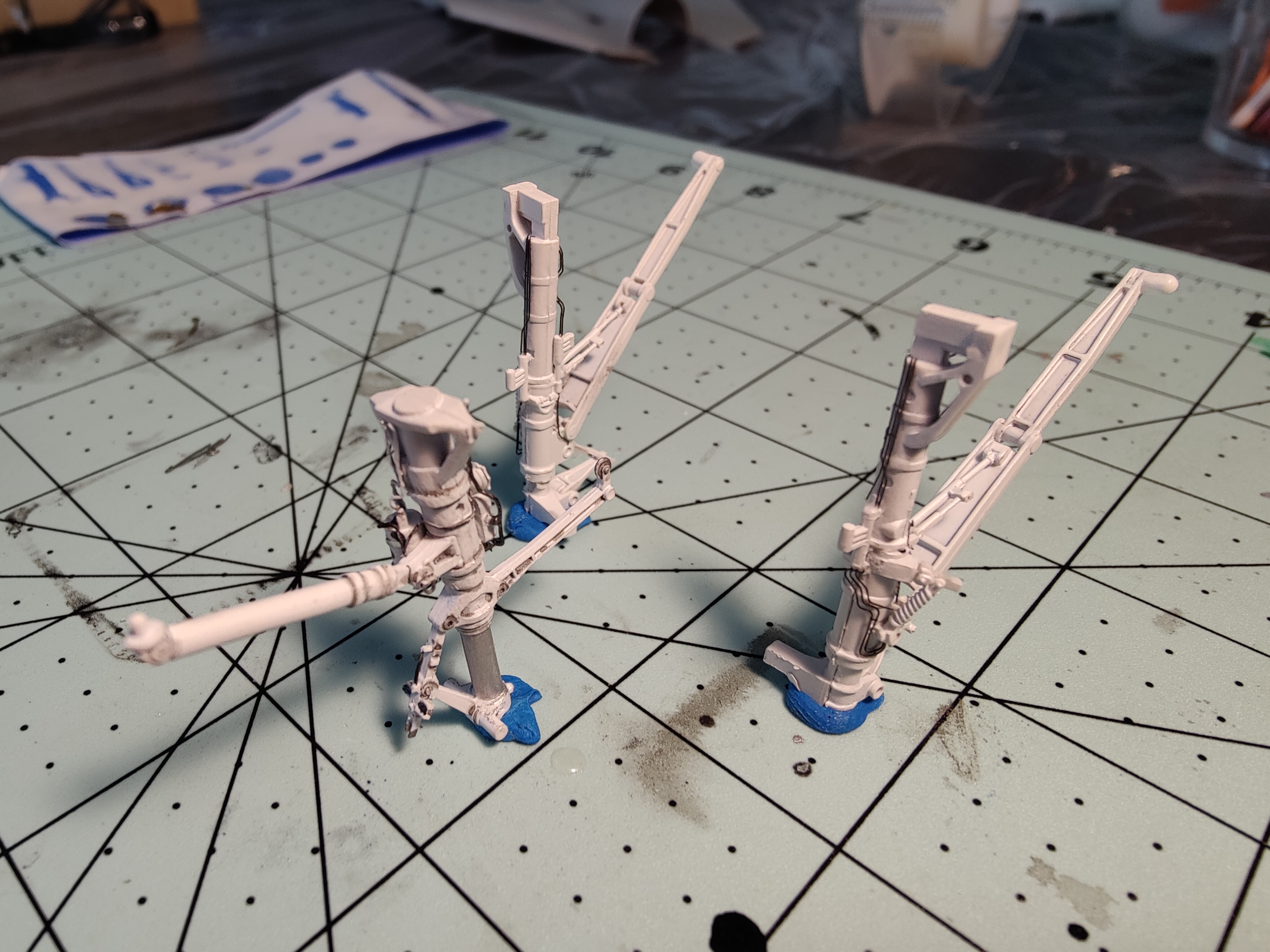 Micro Posted November 14, 2022 Author Share Posted November 14, 2022 Thanks, Happy. Yeah, I will always be the first to admit that my memory has its shortcomings. But I remember thinking I had to absorb everything that plane Captain taught me. I remember him grabbing some cleaner and wiping down the area behind the gun. Like I said I don't actually remember much about the jet itself, I just remember him complaining as he was cleaning, saying that he wished they would upgrade that jet to the new gun vent. Anyway, Slow progress but coming along. Still working on the landing gear because of how much I enjoy doing the little details. Mostly finish on the nose gear, with plumbing done with solder wire. I also added the abort latch and actuator. I also had to create a new AOA indexer because I lost the kit part. Still some final details to do on that one. Just began work on the main gear. Added the details from the Edward detail set. Now some putty and sanding before painting. Quote Link to post Share on other sites