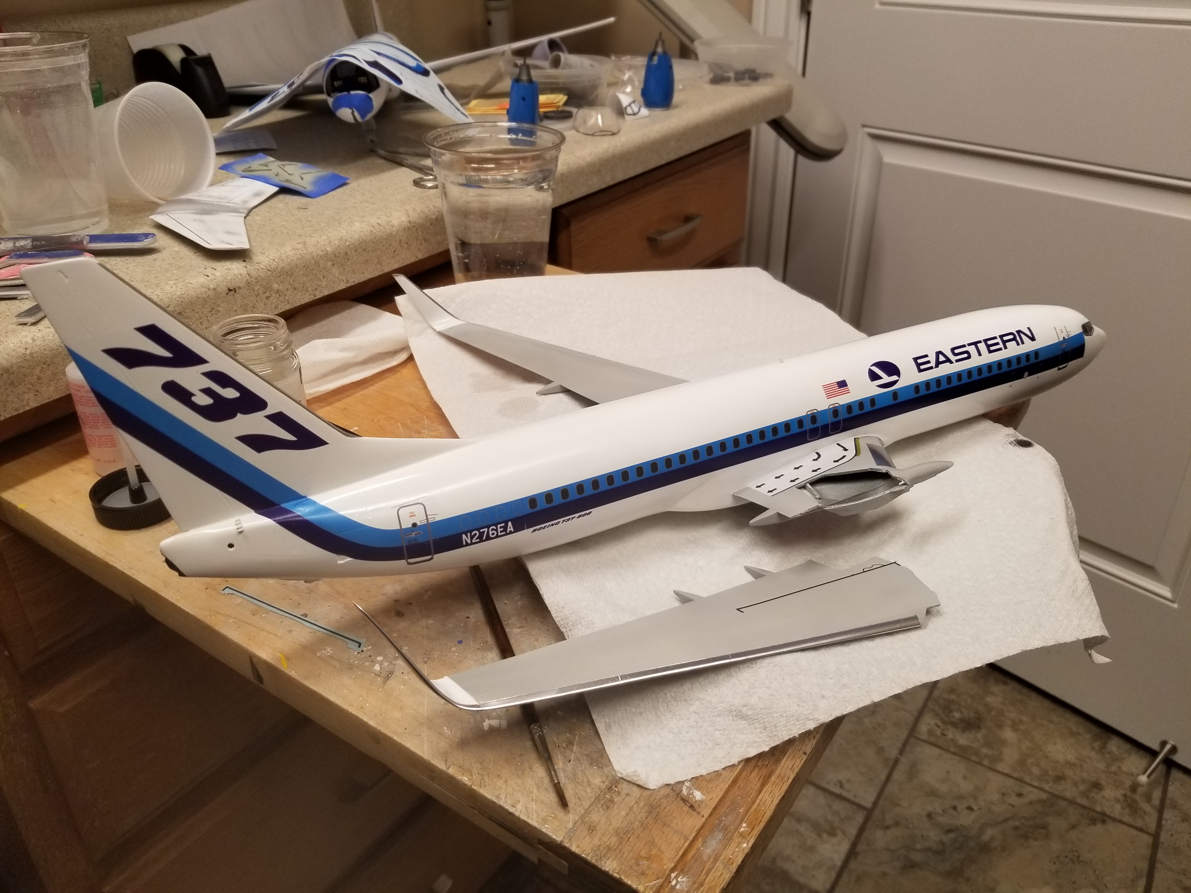f5guy Posted February 25, 2024 Author Share Posted February 25, 2024 (edited) Alright! I finally got some time to get the blown off wing problem fixed and painted. Tonight I'll be doing decals. Then will come the fun part...... trying to match paint colors to the decals to do the wrap-around pattern on the nose. V1 supplied decals for the nose, but no way, no how are those laser printed decals, which are quite stiff, going to wrap around the nose. There's a few other areas that need to be touched up too. It should be fun 😳. Pic 2 is a teaser pic of the Delta 737-900ER that I started a few weeks back. That involved cutting some fuselage plugs from another -800 kit. Thankfully, the donor kit can then be shortened to a -700/C-40 version, so no harm, no foul. If you look closely, you can see the plugs. I'll be using decals for the windows, so I didn't care if they didn't line up. They'll be getting painted over anyway. All for now, Fred. Edited February 25, 2024 by f5guy Quote Link to post Share on other sites
