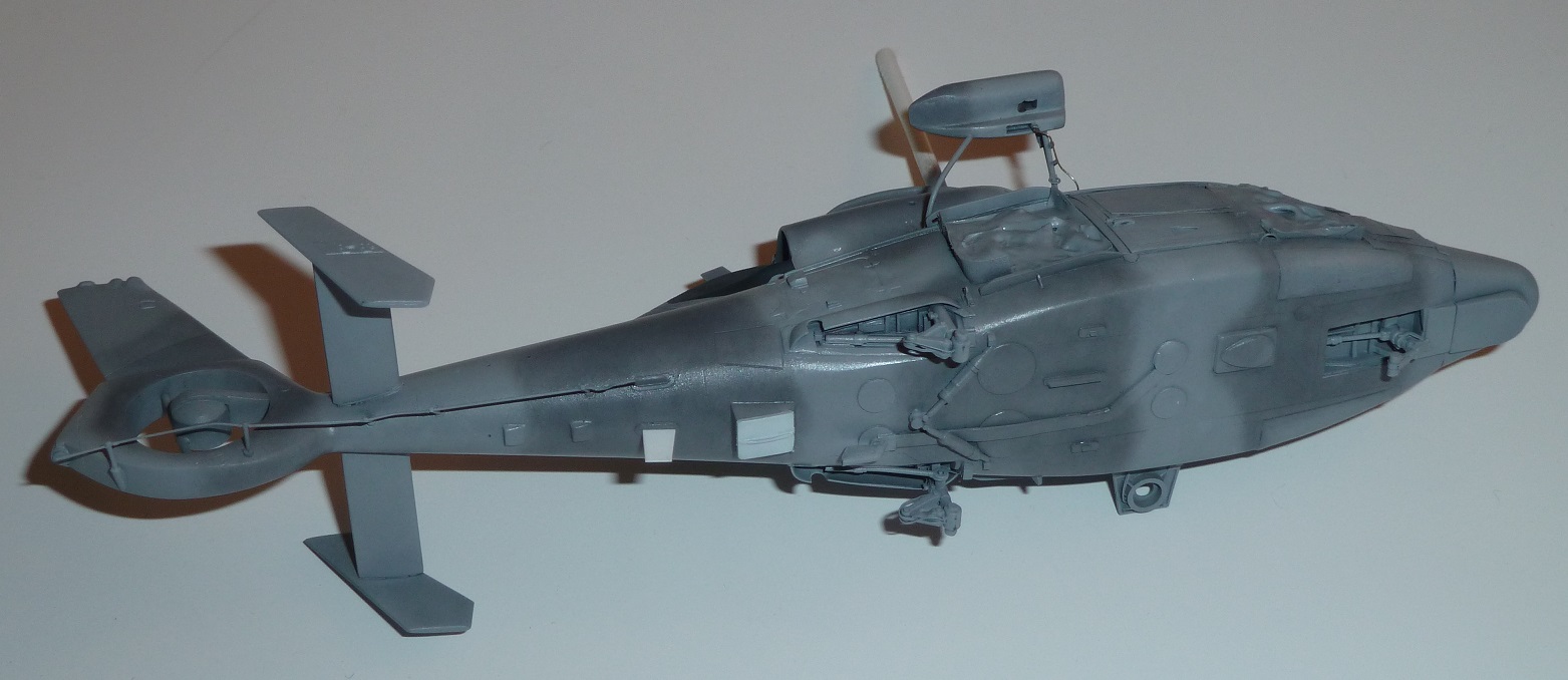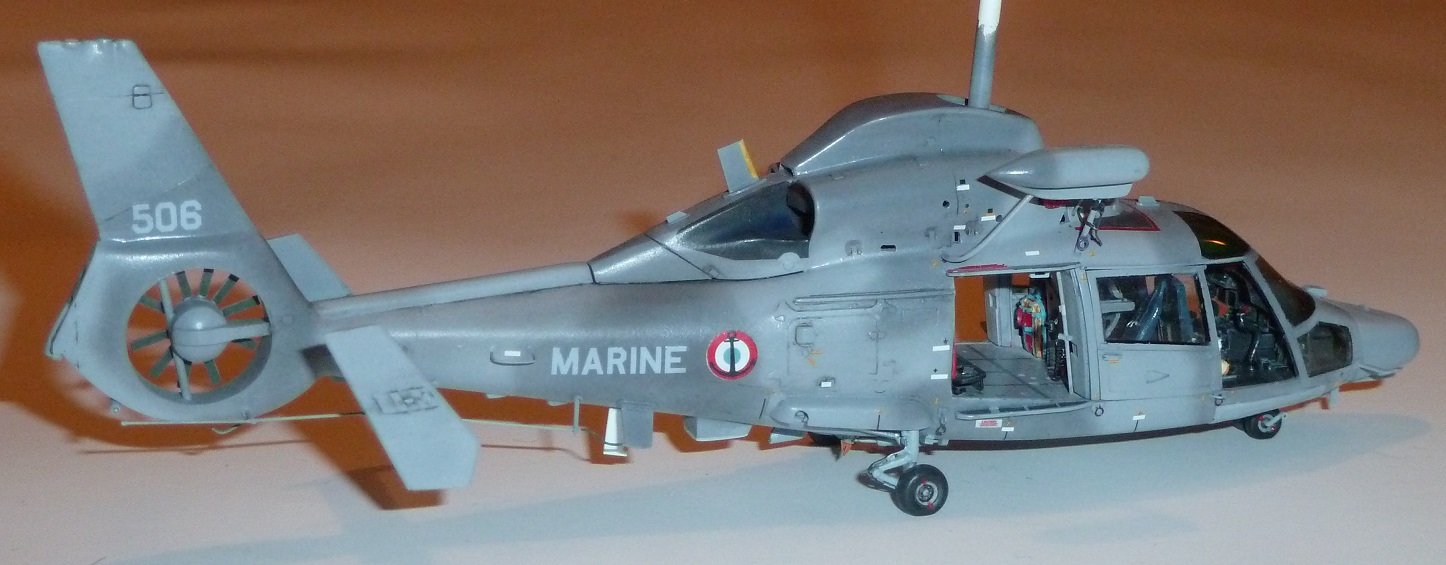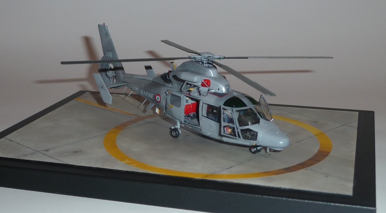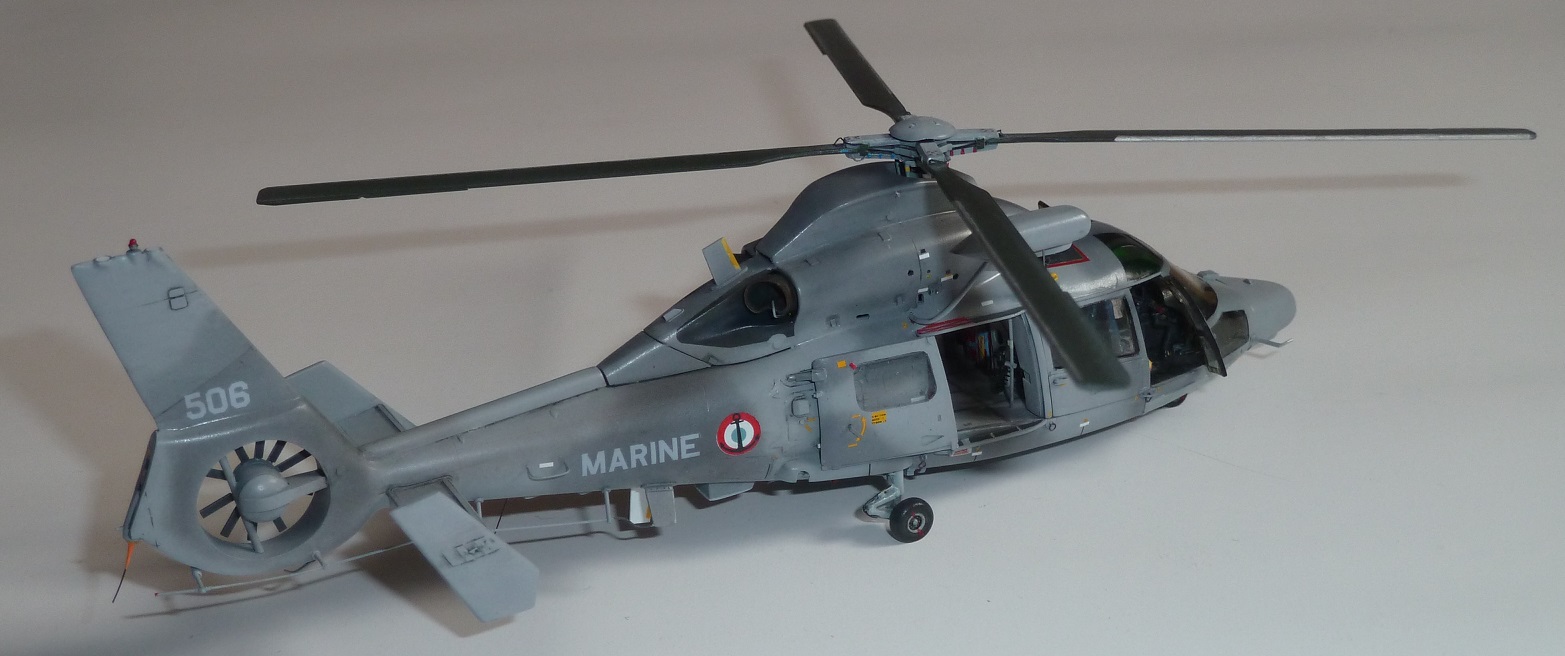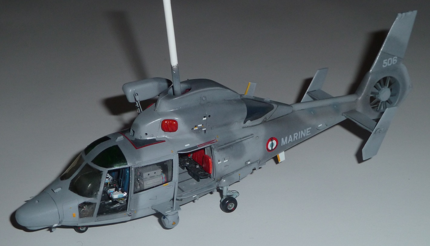 colargol Posted May 21, 2023 Author Share Posted May 21, 2023 First, a masking preparation ... Then, I painted the inside part of the doors to be be able to put them in place Ready for painting ! I began with a black coat all over the parts (to suppress the red color) ... First layers of colors avec with H308 I made some marbling with H307 and H337 ... honnestly, I though I was going to do the "dark grey" of the camouflage using these color, but they are not dark enough ... So I tried with H331 ... TOO DARK !!! I lightened it using light coats of very diluted H308. I even made variation of lightening on the tail depending on the number of light coats ... I have painted the exhaust areas too (several shape depending on the version of the Panther) The final version of the rotor (first I painted the blade in Midnight Blue H55, but it turns out, it was a mistake. They are Olive green with a aluminium leading edge) Then I started the brush painting job (mostly with Prince August colors) The decals are coming from various origin, including Carpena Super Etendard, Syh@art Rafale (the "MARINE" text. The "M" shape was not correct, so I have used the legs of the "M", but, the shape of the "A" without the horizontal bar and upside down ...). The 36F logo comes from Syh@art 72-911 decal sheet. I have removed the masking tape ... Quote Link to post Share on other sites
