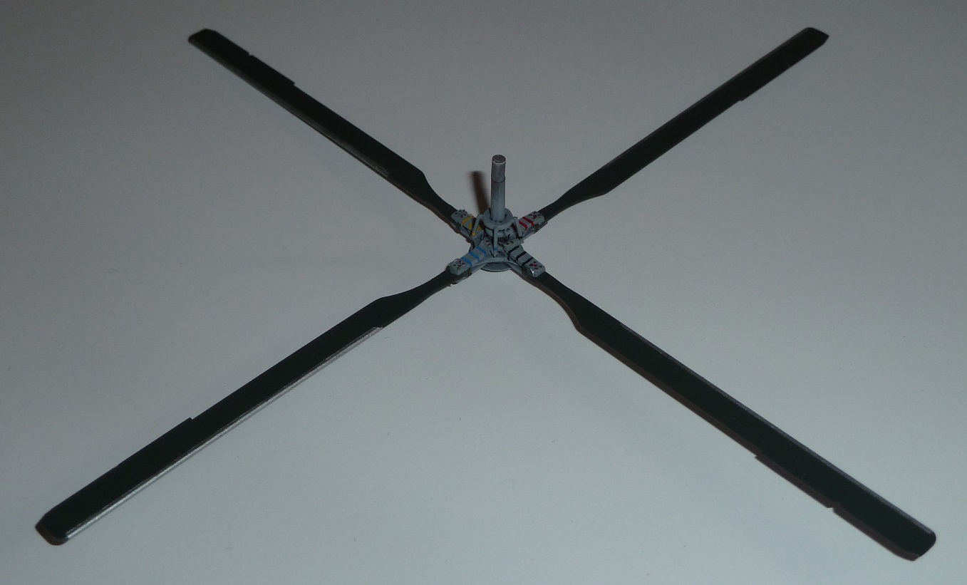 colargol Posted May 21, 2023 Author Share Posted May 21, 2023 The main rotor is made using Revell parts, but not a lot and with a lot of modification. The blade are from Dreammodel I have used Micro-Mark decal rivets to represent the bolts It turns out that my version of the rotor is wider than the hole in the top of the engine fairing ... There was a very stressful part of the build to increase the size of this hole ... But it worked 😉 I was then ready for painting ! Quote Link to post Share on other sites