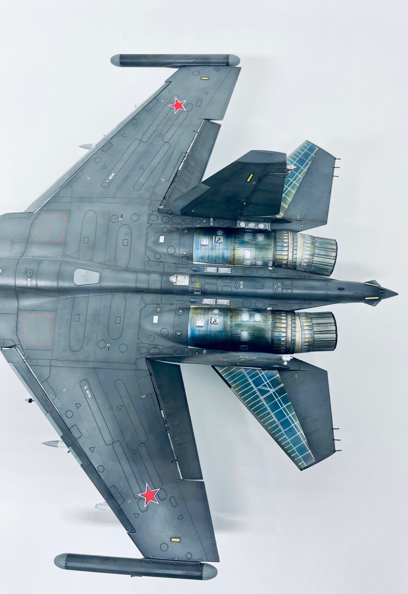 George Guimaraes Posted July 15, 2023 Share Posted July 15, 2023 Hello! This is my recent project, a GWH SU-35S Flanker-E, 1/48 scale. It is, undoubtedly, my most demanding and longest build since my return to the hobby. It certainly could have been a much easier and quick build, but after seeing some fantastic jobs in the net and to be, at least, close to the level of the kit, I had to try harder. For starters, Sukhois have that particular hundreds of different tones for the metals in the engine/exhausts areas. They differ a lot, depending on the incident light and angles of view Also, there are not too many good references around, specially for the underside. But then I got lucky and found a masterpiece from a guy named Haneto, here at the arcforums.com. He came out with a fantastic tutorial for his SU-27 which I tried to follow. Of course, I didn't get even close, but it helped a lot. The kit is very good, with an impressive level of details and weapons, but as Mr Haneto points out, there are a few issues to deal with. In my case, the main one was the fitting of the engines nozzles to the fuselage. Their diameters were not a perfect match. Don't know if was my fault or not, but I ended up with some small steps. Fortunately, that area is so visually busy and colorful that is mostly unseen. Instructions, for this particular kit, because GWH has several SU-27 and SU-35, are far from ok. They don't come with decals spots for some weapons, so I had to download them from the net. Also, I don't like their choice of CAD pictures instead of good old drawings. Those low resolution pictures aren't clear enough and lack precise locations for some items, at least for me. The decals are just ok too. The red stars are a bit thick, but the problem is the transparent film for the rest. They aren't that transparent and tend to silver, so I cut them off everywhere I could. Good call! I've used Quinta Studios 3D decals for the cockpit and Galaxy masks ( I'd say they are essential) and Reskit resins for R-73 missiles. Paints are locally made polyester based colors. And, of course, for those blue, gold and silver shades for the engines areas, I've used the Tamiya Weathering Master Sets, also very useful. Hope you enjoy and, again, kudos for Mr Haneto and his tutorial. Cheers! George Quote Link to post Share on other sites