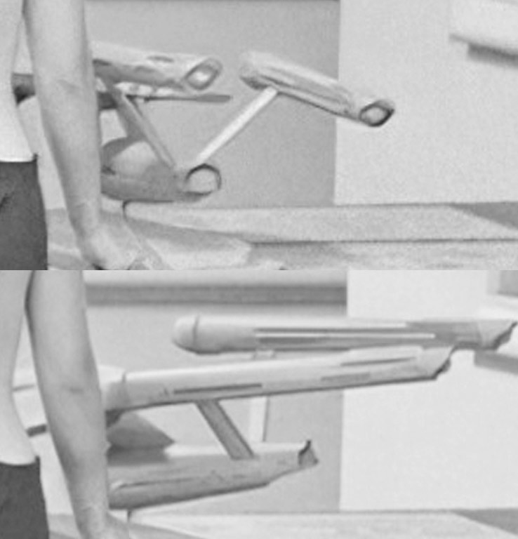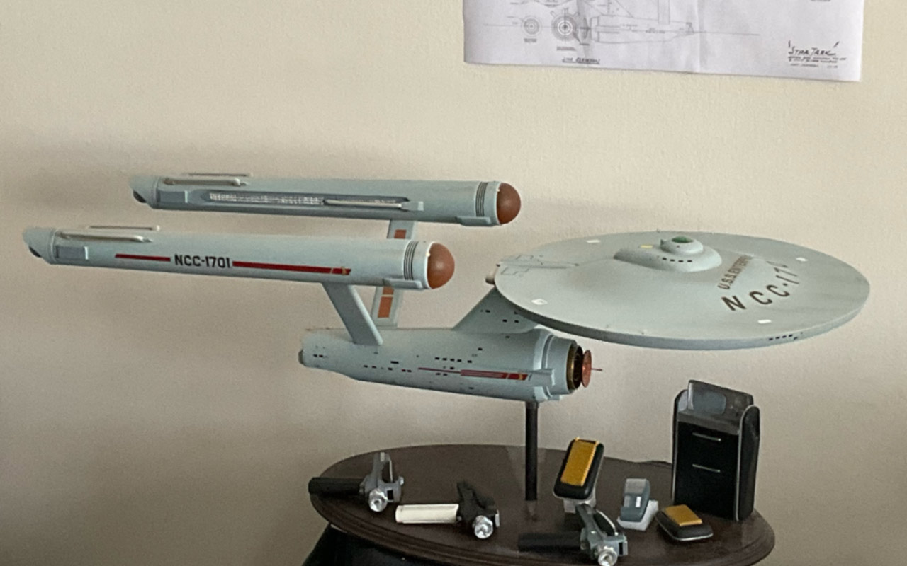 VADM Fangschleister Posted December 25, 2023 Share Posted December 25, 2023 8 hours ago, Shaw said: Actually, I don't know where that one is, but the other one (encased in Lucite) is part of the Smithsonian's collection. Here is some of my research on those models... They seemed rather fragile, so I'm not sure the one outside the Lucite would still be around... but if it is, it counts as both prop and studio model (having represented the Enterprise in "The Doomsday Machine"). Very cool. I did not know it was used in The Doomsday Machine but it makes sense for all the forced perspective things they had to do. Your rendition of the replica is aces! Might even do a 'shop of yourself in a similar pose as The Great Bird Of The Galaxy with your model properly positioned. No, I'm not being snarky. Just something fun to bring smiles. In other news, and possibly due to intrusive algorithms in my web searches, a metal replica of the Cat's Paw Enterprise appeared in my eBay feed and I bought it. Made by a feller in the UK. Not as precise as the original but not bad and not too expensive ($30 w/shipping) and should be here in January some time. Glad the Lucite-encased model still exists. You may be right that the 'unsecured' one simply got broken. However, with all that said, I think that the Enterprise was and is simply the most iconic of science-fiction creations. If I remember correctly, everyone wanted something believable and 'serious' and not some cartoonish/ridiculous creation. Something that people would accept as a logical creation that had functionality. Granted, some of it is quite fantastic but in the very best of ways. Matt Jeffries was a national treasure. Quote Link to post Share on other sites