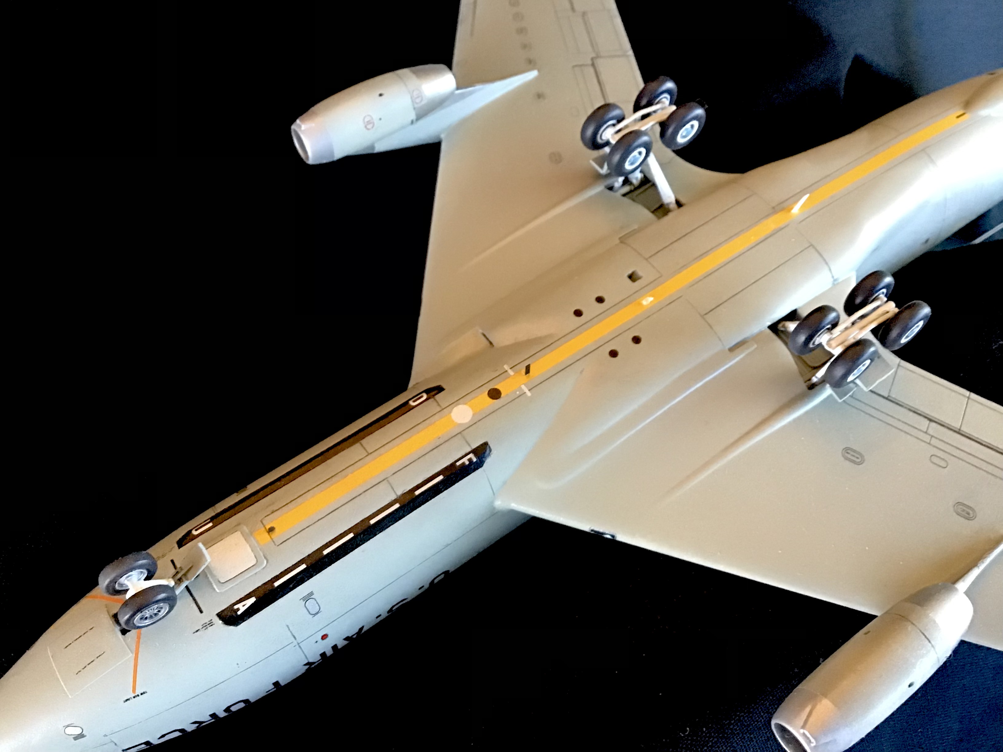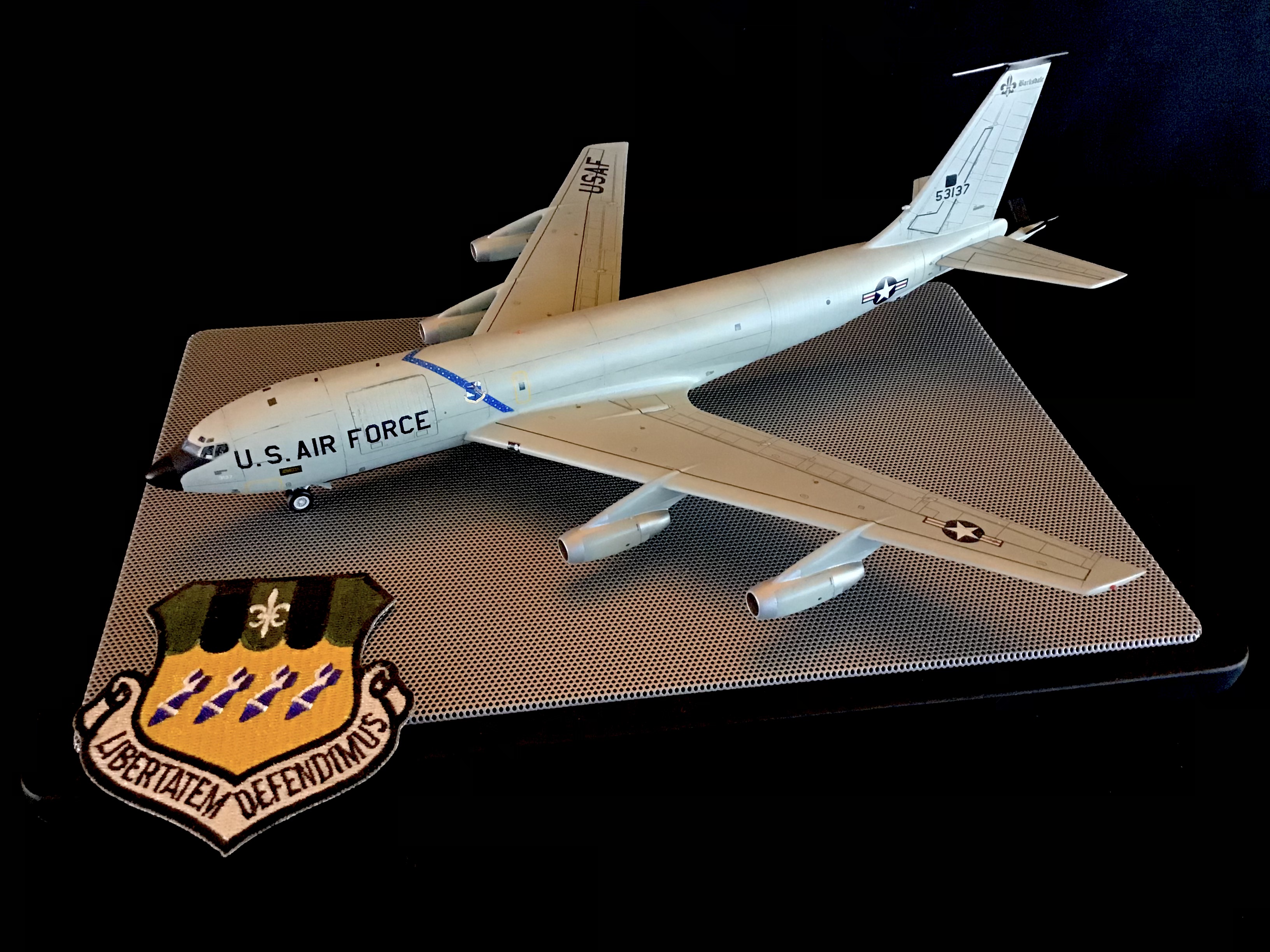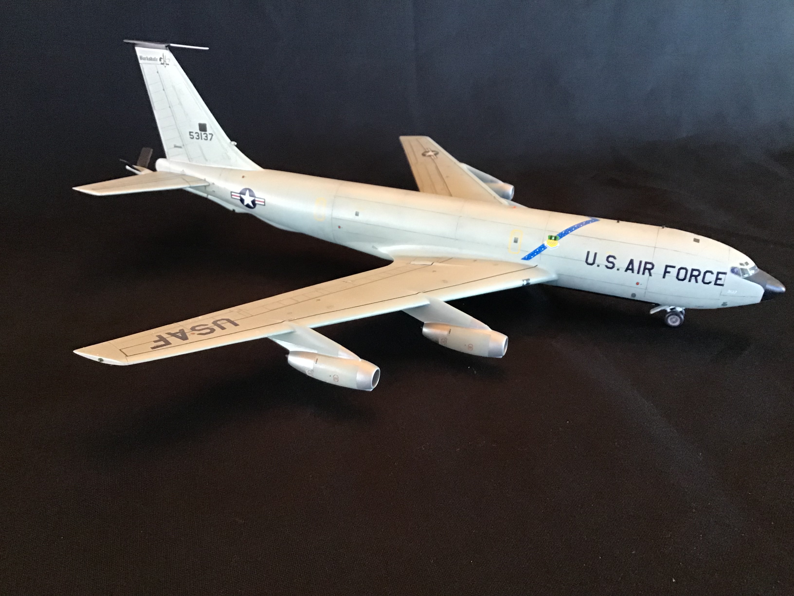 bluedot25 Posted October 12, 2024 Share Posted October 12, 2024 (edited) This project was built along side my earlier NC-135B. It depicts a regular line jet of the 2nd Bomb Wing in the 1980s. The 1/144 Minicraft KC-135A kit had some improvements added including: *Fisher resin nose * Authentic Airliners KC-135 cockpit window decals *Details added to the main gear wells *Fuselage reinforcing bands sanded off and re-done using thin tape and paint *Added visible rib detail to cargo door *Refueling pod window added with clear plastic from the “spares box” *Added faired “bulge” below HF antenna at top of the tail *Filled and re-scribed most of the fuselage, and deleted some panel lines on the wings, and horizontal stabilizers, and re-scribed others *Shortened the span of the horizontal stabilizers Paints were enamels (Model Master, Xtracolor and Testors). Decals are kit, aftermarket, spares box and custom. And as with NC-135B build, a BIG thank you goes out to Chris (Gator52), Don (Drifterdon), and Paul (Dutch) for their help with decals, parts, info and motivation! Edited October 12, 2024 by bluedot25 Quote Link to post Share on other sites