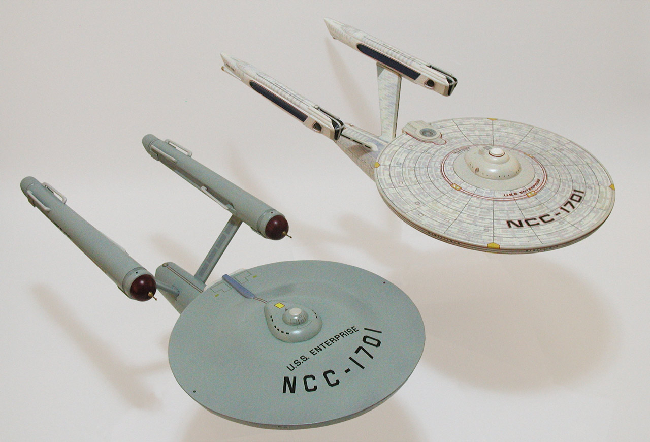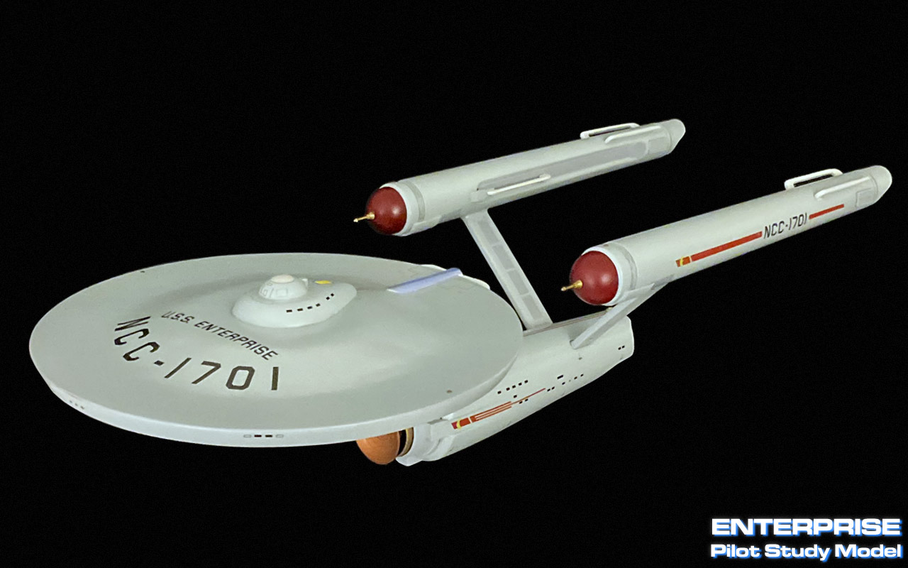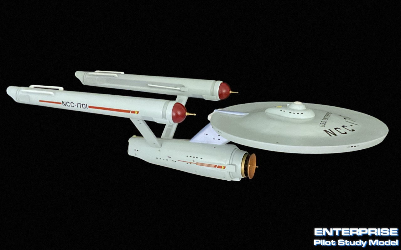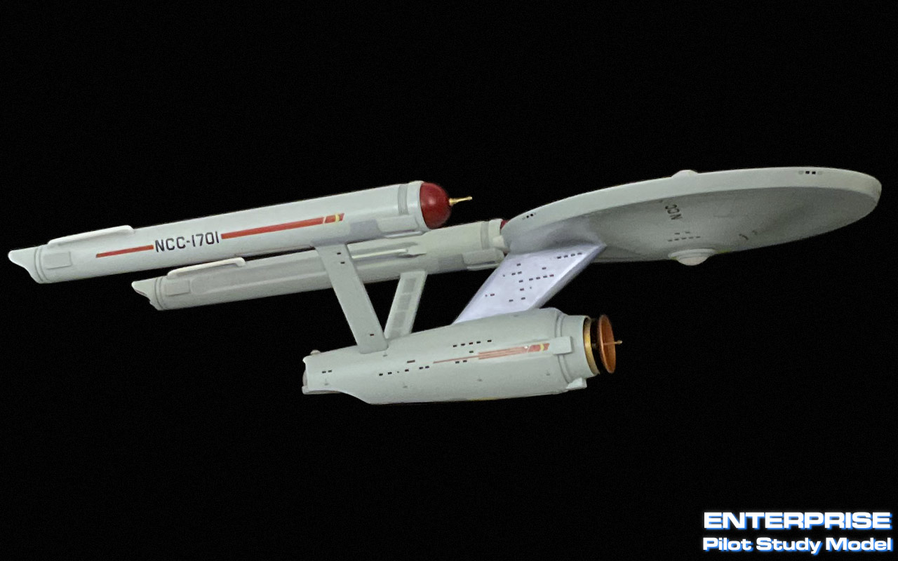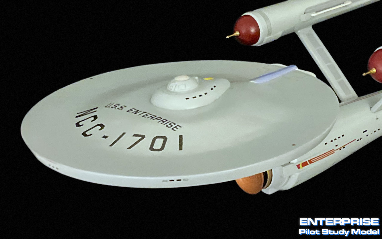 Shaw Posted November 20, 2024 Share Posted November 20, 2024 (edited) Backstory In 2007 I drafted my first plans of the 33 inch Enterprise model. I knew that they had errors and that the only way to find them was to build a model based on the plans and compare it to existing photos of the original model. Not being much of a model maker, I had hoped that by making the plans available that someone with real talent might take a stab at it. In 2009 I decided I may as well give it a try, and I built my first two-thirds scale study model. Because it was a daunting project and I really hadn't built any models since the mid 1990s, it was made with a lot of compromises to ensure that I could finish it. The secondary hull and nacelles would be surgically altered parts from the AMT Cutaway Enterprise kit, some detail parts were from Don's Light & Magic, and I would use generic third party decals. This meant that the primary hull and dorsal would be the main scratch built elements (these were the areas most different between the 33 inch and 11 foot models). Here are some shots of the model taken back in 2009/2010... The model served its purpose and I was able to address a lot of errors in my plans. In 2010 I took another shot at a two-thirds scale study model (with fewer compromises after my experience with the 2009 model) and felt like I had refined my plans enough to invest the time and resources in building a studio scale replica. I started building that model in 2015 and finished in 2019. When I finished the studio scale model, I realized I had three models of essentially the same Enterprise, so I decided to rework my 2009 study model. The goal was to fix many of its issues, but also to have the model reflect the pilot configuration (I had, to that point, aimed at replicating the series configuration in all my builds, the studio model is detailed as the original looked in December 1968). The Model Today Some issues were always going to remain. For example, the contours of the primary hull are slightly off. It would have been easier to scratch build a new hull rather than correct the original... but my goal was to rebuild the model, and that big a change would have been more like using the model as donor parts. I re-sculpted the front and rear of the secondary hull, replaced third party parts with new parts based on my final plans (I made two of everything as I'll be doing something like this to my 2010 study model), and made all new decals (I started with my studio model's decals, reduced them in size and replaced the series graphics with pilot graphics). I tend to work rather slowly, but after five years I have a rebuilt model. This shot sorta gives an idea of what I was aiming for in matching details of the original model. Here are some shots of the model... The model with the energy barrier (second pilot)... My re-creation of one of Jefferies' paintings of the Enterprise... And some test shots of the model using a fish-eye lens I had gotten recently. Edited December 19, 2024 by Shaw Quote Link to post Share on other sites