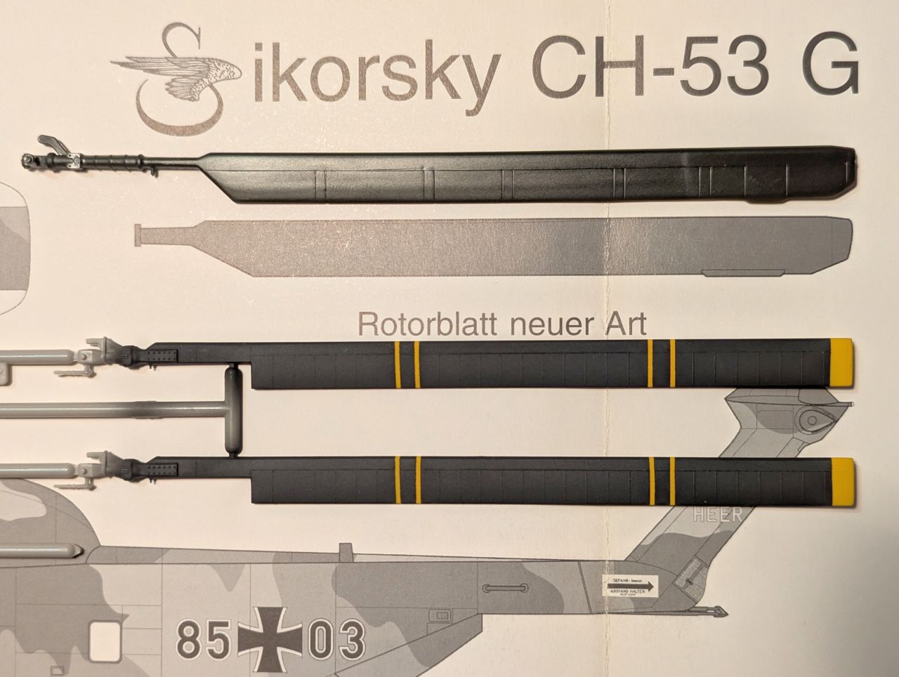 PeepingBear Posted December 29, 2024 Share Posted December 29, 2024 (edited) If you desire to build a modernised H-53 with improved rotor blades, you could look for Italeri's MH-53E kit, this has seven rotor blades that can be used for a conversion, their shape is not perfect, but... Furthermore, you also get the larger external drop tanks (total capacity 4,921 L), the kits only offer the older and smaller external tanks (tot. cap. 1900 L?) BTW, the discontinued Eduard PE interior detail set is also for this kit, well who can see the detail is wrong for an old school H53 without a microscope... Edited December 29, 2024 by PeepingBear large external tank addendum and typo removal Quote Link to post Share on other sites