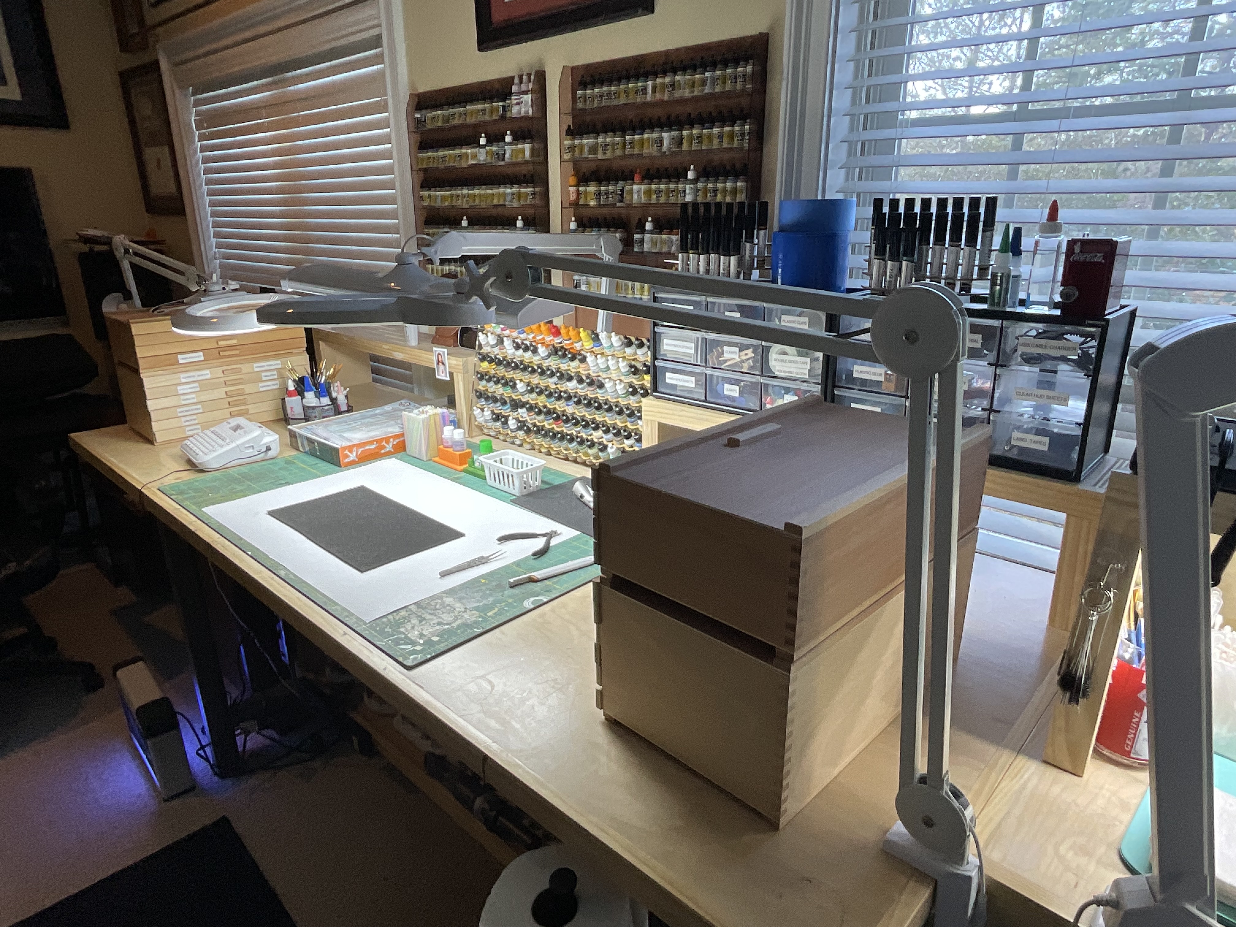 dai phan Posted January 20, 2025 Share Posted January 20, 2025 (edited) Hello all, I organized my work station so it is less clustered. I bought the wooden chests and store the majority of the tools in there. I only have on my bench the absolute items needed while working on the project. A label maker is handy to know where things are. Dai Edited January 20, 2025 by dai phan Quote Link to post Share on other sites