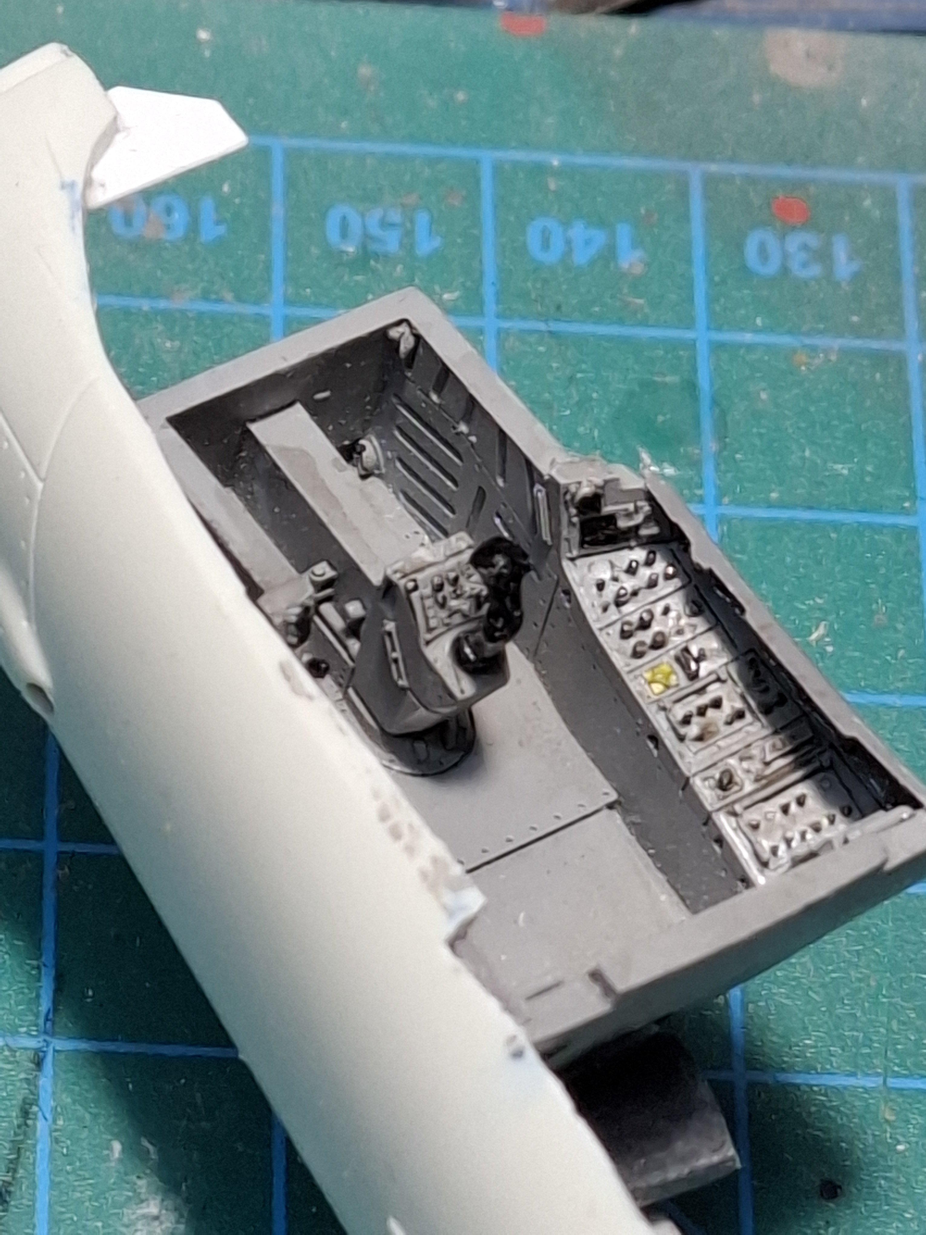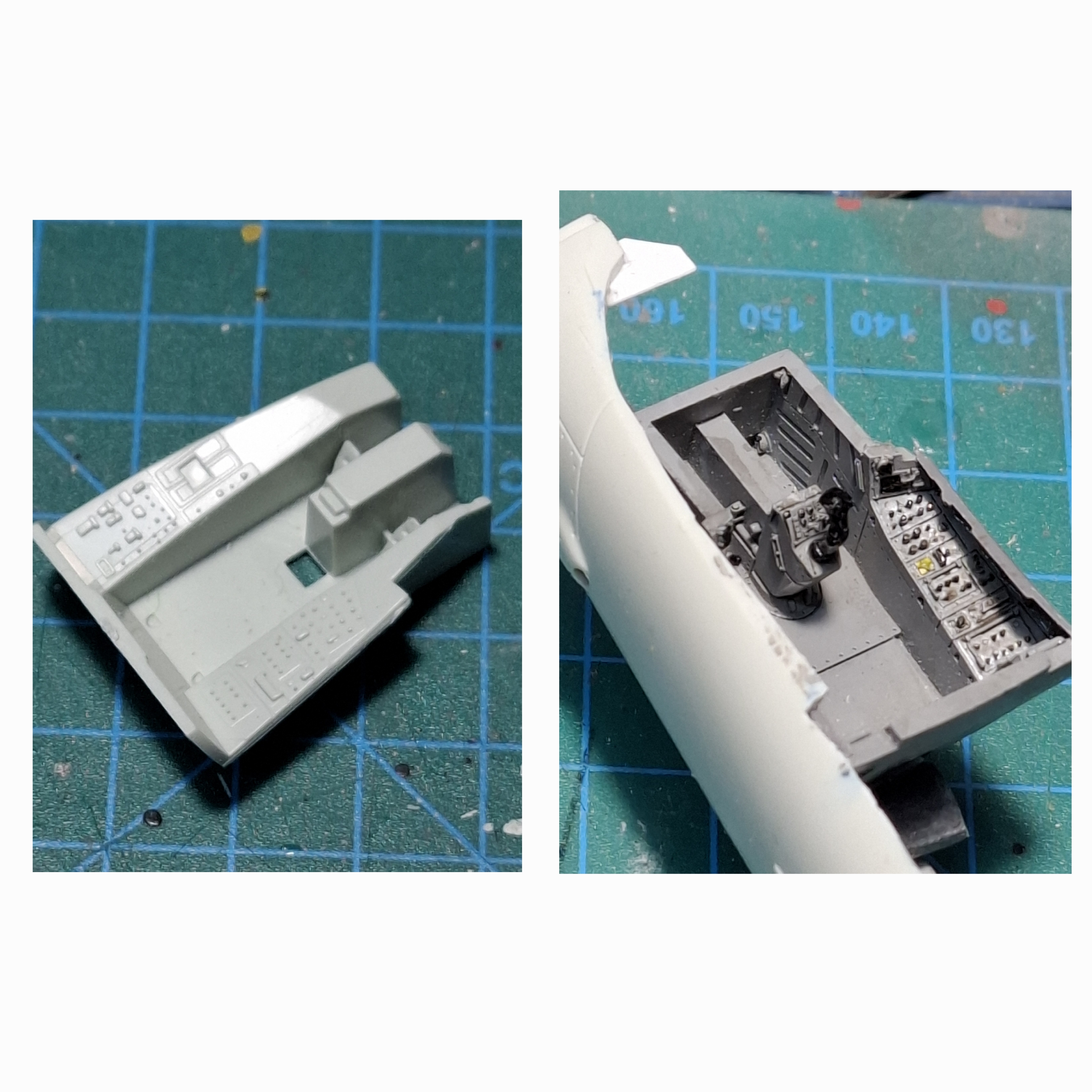 lavony Posted January 31, 2025 Author Share Posted January 31, 2025 Getting started… after reading some reviews about the kit, I decided to add aftermarket to the cockpit & APU. For the cockpit I’m using the AIRES 4917 set, and for the APU it’s the flight path set. also attached is the decals sheet. the cockpit is great, but the fitting to the kit needed a gentle cutting. I’ve painted it light gray , the switches were painted black and then I did a black wash . the APU section fits great without any major issues. also attached are photos to compare the kit’s cockpit Vs the Aires. to be continued… Quote Link to post Share on other sites