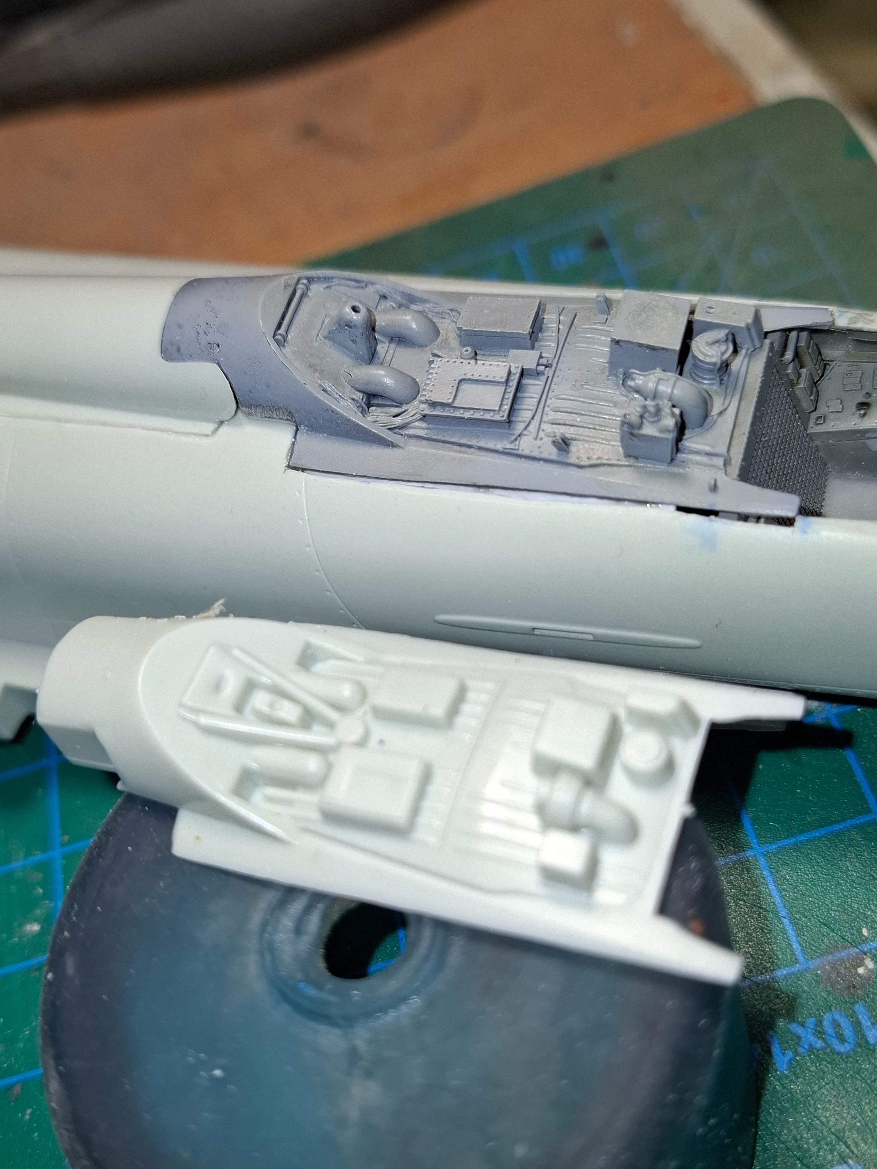 lavony Posted February 8, 2025 Author Share Posted February 8, 2025 The fuselage is glued, and it’s time to add the cockpit resin parts. some filling is needed around, and since the gaps are too wide, I’ll use epoxy putty later. Quote Link to post Share on other sites