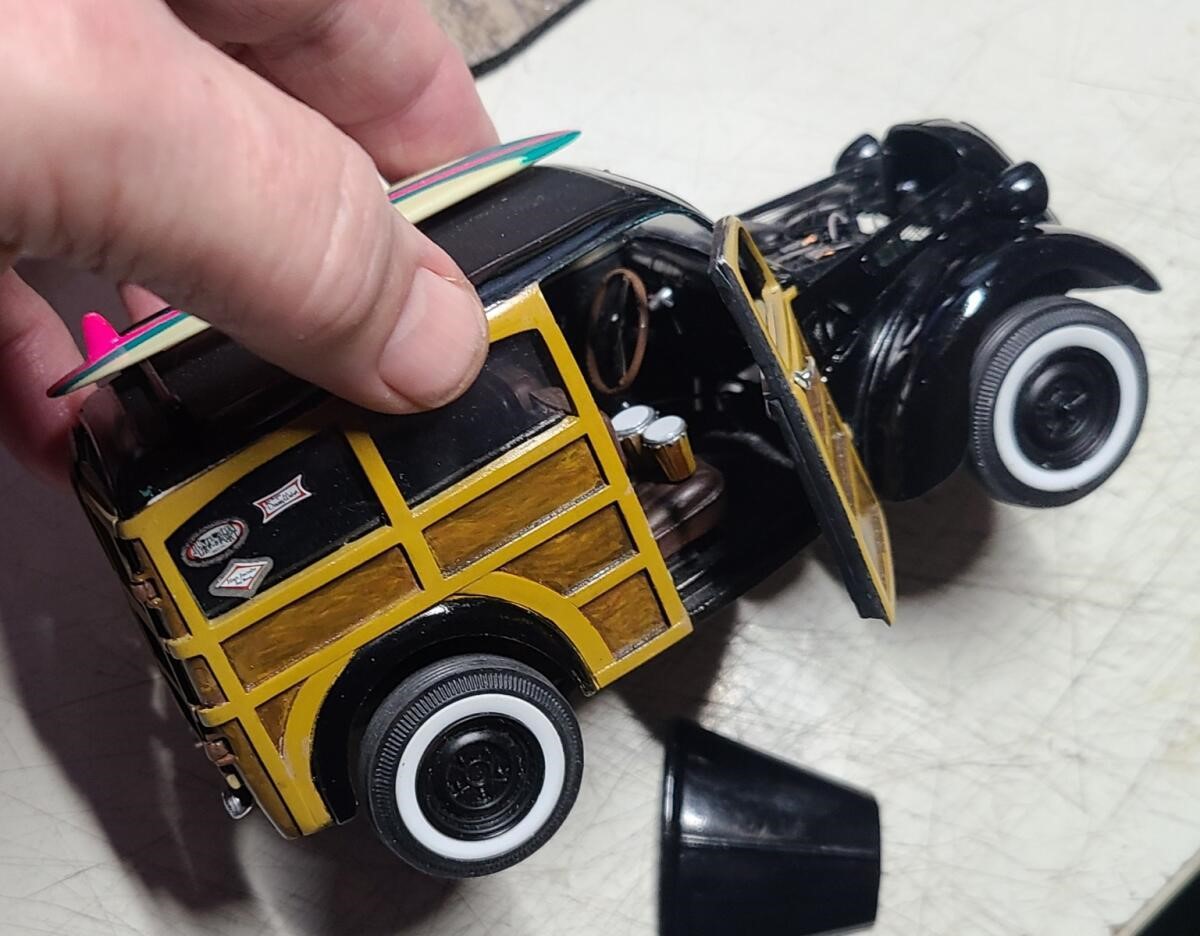 Whirlybird Posted March 29, 2025 Share Posted March 29, 2025 This was started after seeing a photo of a Thames Woody. There is no kit available, but Revell has a stripped-down dragster version of a Thames van. I kept the body shell and tossed everything else in the parts bin. Then while cutting side windows and framing the body up to make a woody version of the panel van, I began a search online for details on the stock engine and drivetrain. The engine was the hardest part...modified a Revell 4 banger to fit. Quote Link to post Share on other sites