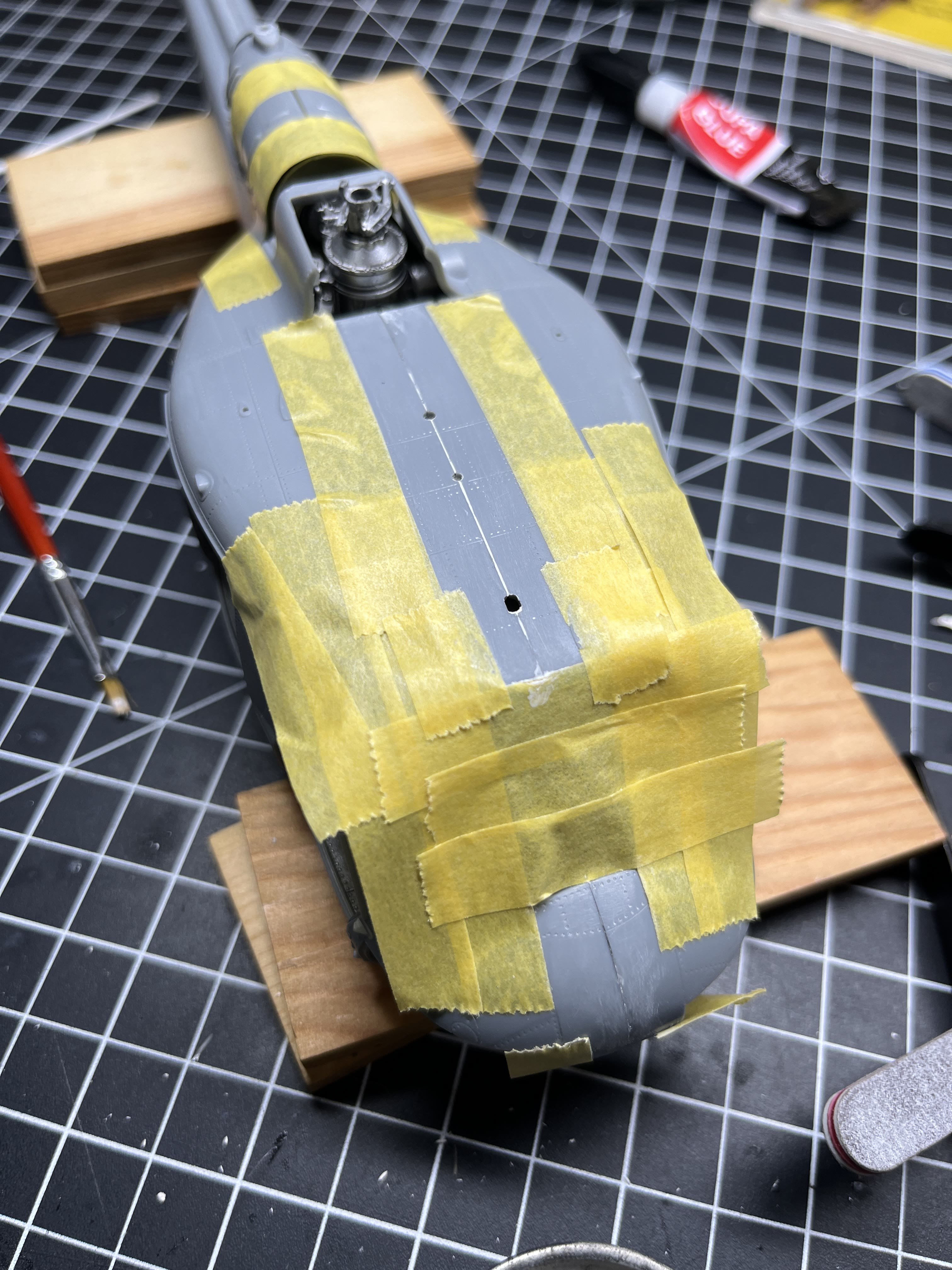 UH-1Mad Posted December 7, 2025 Author Share Posted December 7, 2025 (edited) Time for an update, not much of one, but progress nevertheless! The cabin is sealed up, lots of putty and sanding as I had quite the time getting this bad boy together. I could not seem to work out the obstruction that stopped the two fuselage halves from sealing nicely so had a couple of bigger gaps that needed some work to fill and sand, they just did not want to marry together without effort. 'Emergency Exit' decals were kindly made up for me by member Karl h. They went on beautifully so again thank you mate! I used just strip styrene to make the yellow lines. Tamiya clear green mixed with some MrColor leveller for the greenhouse windows. SMS washes (black and brown for weathering) and drybrushing. Various scratch built items - map lights made with sprue and coiled wire (I use a pin vise drill and coil wire around a suitable size drill bit). ICS cords were made by dipping the ends in super glue to give it the affect of a 'connector'. Thanks for checking this out! Edited December 7, 2025 by UH-1Mad Quote Link to post Share on other sites