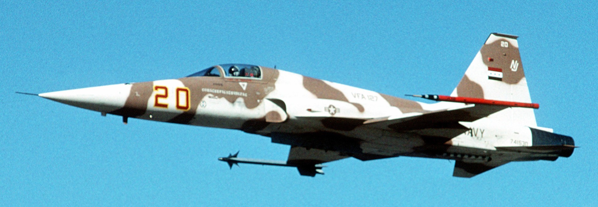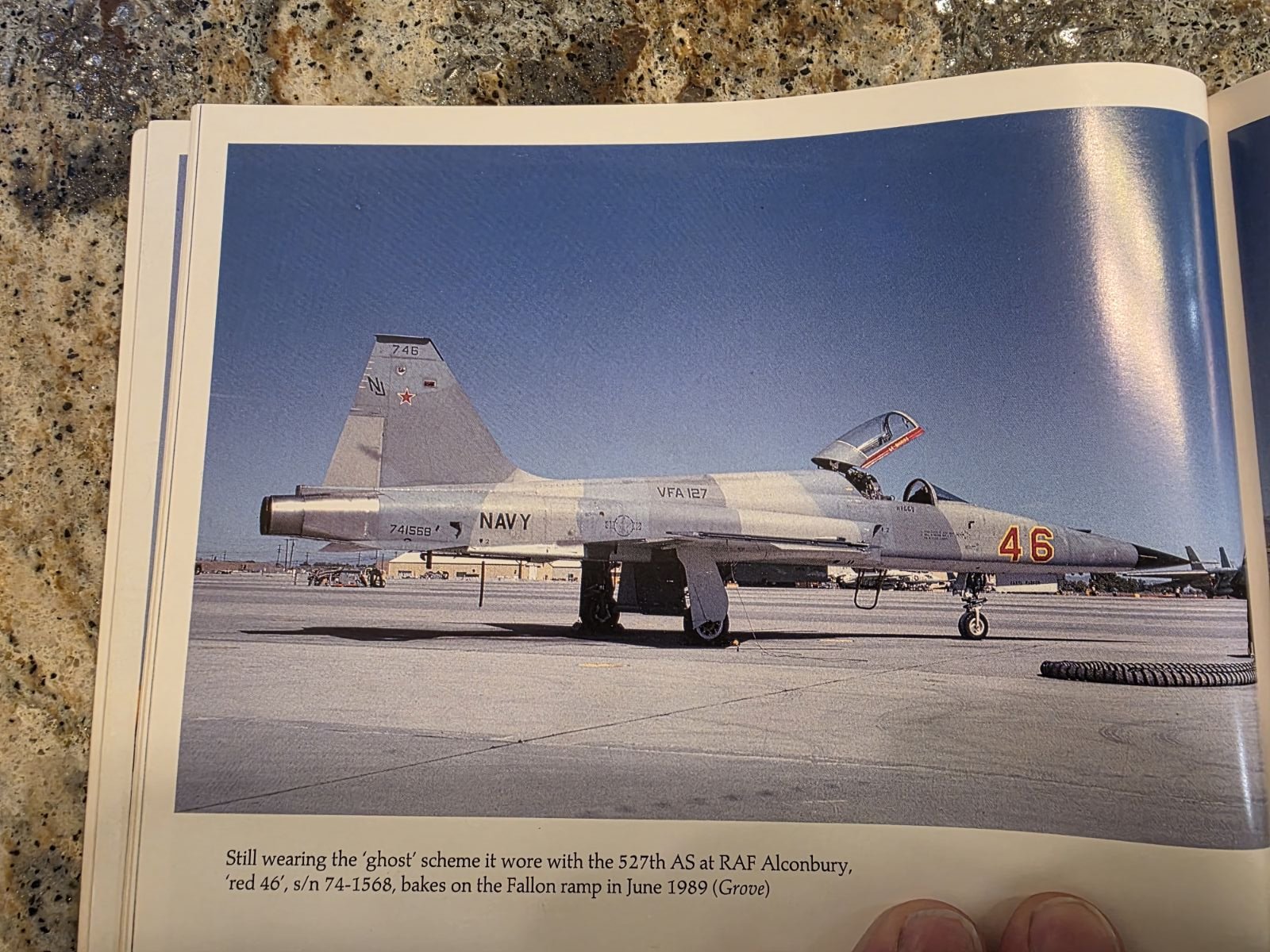f5guy Posted October 29, 2025 Author Share Posted October 29, 2025 Thanks for the kind comments guys! Now regarding the F-5F..... Does anyone have good pics of the upper and lower surfaces of this jet in its later Topgun or VFA-127 years? I've found a few pics from Dave Baranek online, who was a Topgun pilot and took a lot of pics, but they're not quite what I need, although they are a lot of help. The reason I ask is that I have Furball Decals sheet 48-056 "Topgun Tigers & Talons" (highly recommended by the way), which has the paint scheme for this jet. However, comparing it to later pics shows that while the side views are generally the same, the upper and lower patterns are way off. Now I'm not saying that they got it wrong though, as they depicted the jet in 1981, before it went through depot level overhaul. It appears that it was repainted into largely the same scheme, but the upper and lower wing patterns were very different. This is one of the few pics that I have to work with. I think that I've got enough to work with, but if anyone has anything that they can share, that'd be great. Thanks, Fred. Quote Link to post Share on other sites