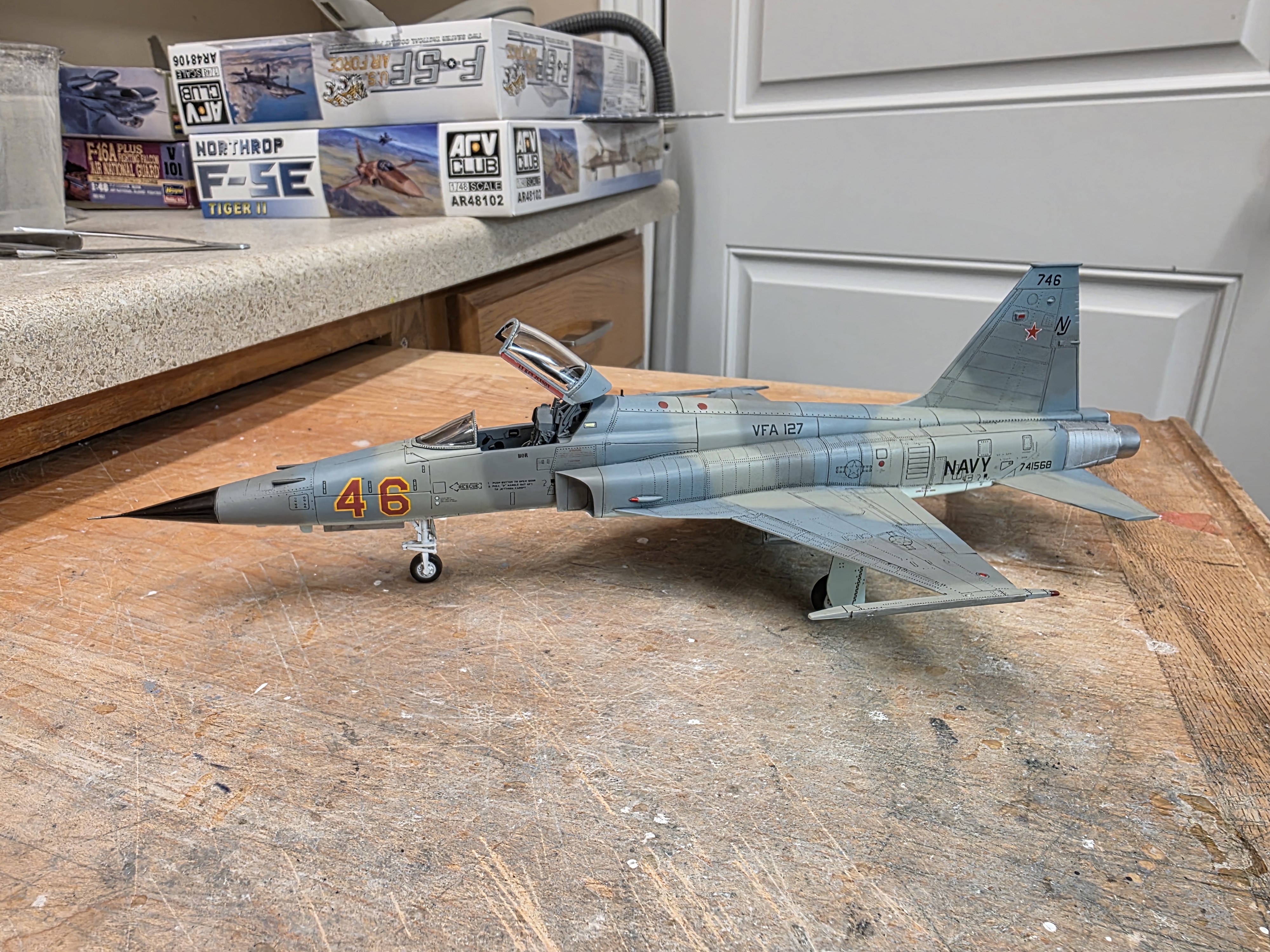 f5guy Posted September 10, 2025 Author Share Posted September 10, 2025 Hi guys, Time for a small update. I've been slowly chugging along on VFA-127 #46, and am getting it closer to paint. Here's a pic. I hope to start working on the cockpit of F-5F #31 this weekend. All for now. Fred. Quote Link to post Share on other sites