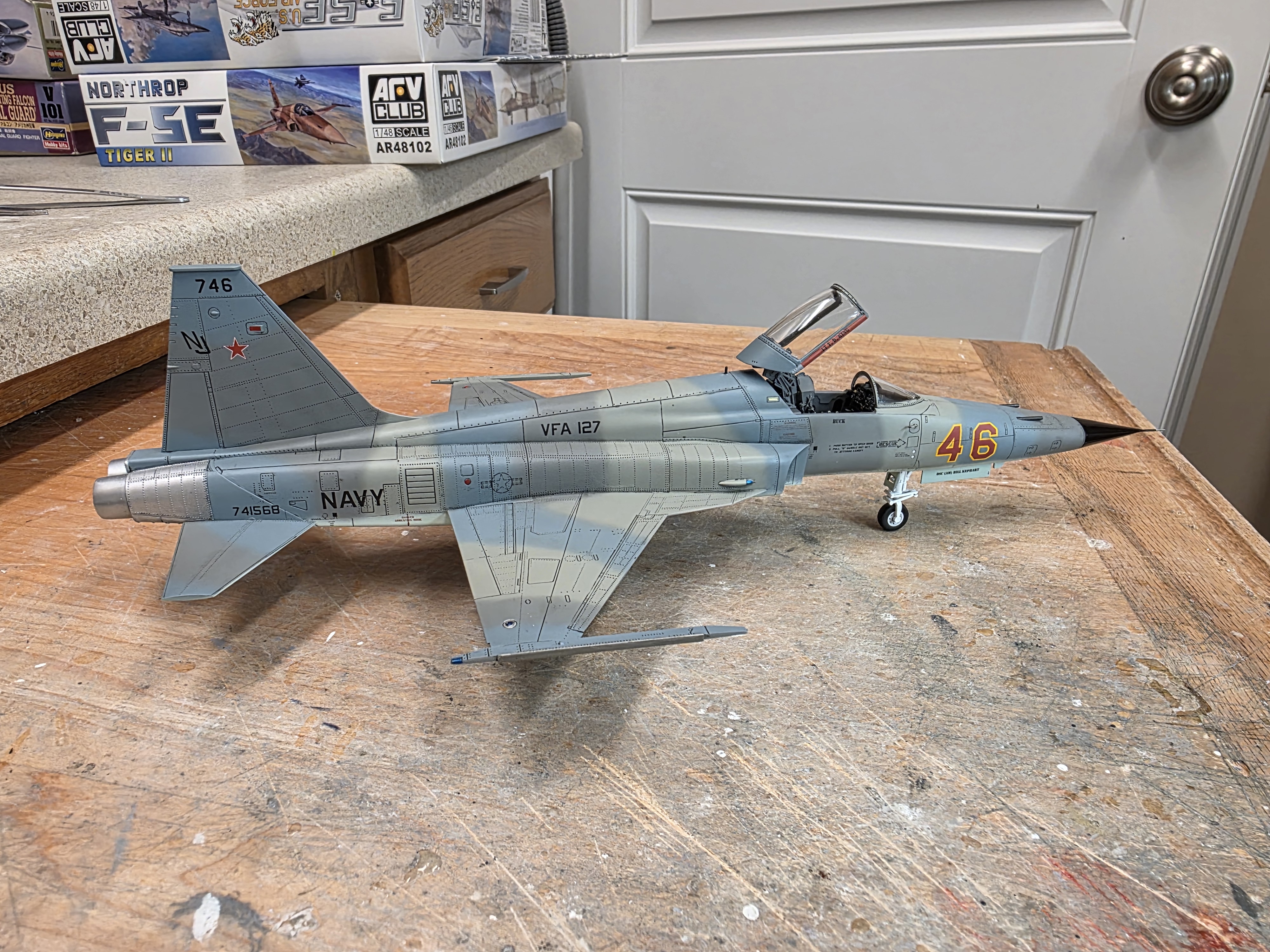 f5guy Posted September 10 Author Share Posted September 10 Hi guys, Time for a small update. I've been slowly chugging along on VFA-127 #46, and am getting it closer to paint. Here's a pic. I hope to start working on the cockpit of F-5F #31 this weekend. All for now. Fred. Quote Link to post Share on other sites