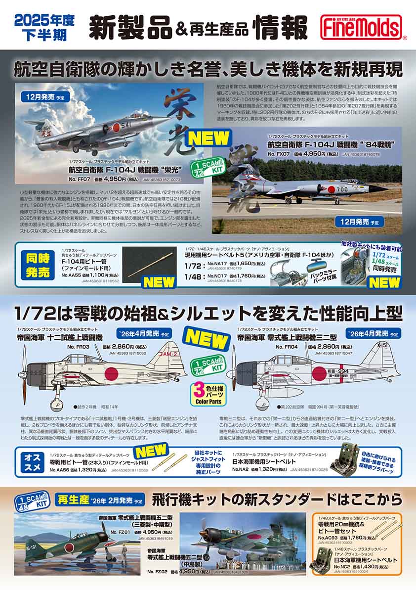 ya-gabor Posted October 5, 2025 Author Share Posted October 5, 2025 To go along with the new Fine Molds F-104J kit in December this year two Nano sets will be also released with straps for the Lockheed C-2 ejection seats. The set also includes three mirrors for the Starfighter. Two versions of this Nano set will be released, one for the 72nd scale F-104 (NA 17) and the other for 48th scale (NC 16) C-2 seats. If the Nano straps for the Fine Molds Zero kit anything to go by then these F-104 straps should also be nice and useful! Best regards Gabor Quote Link to post Share on other sites